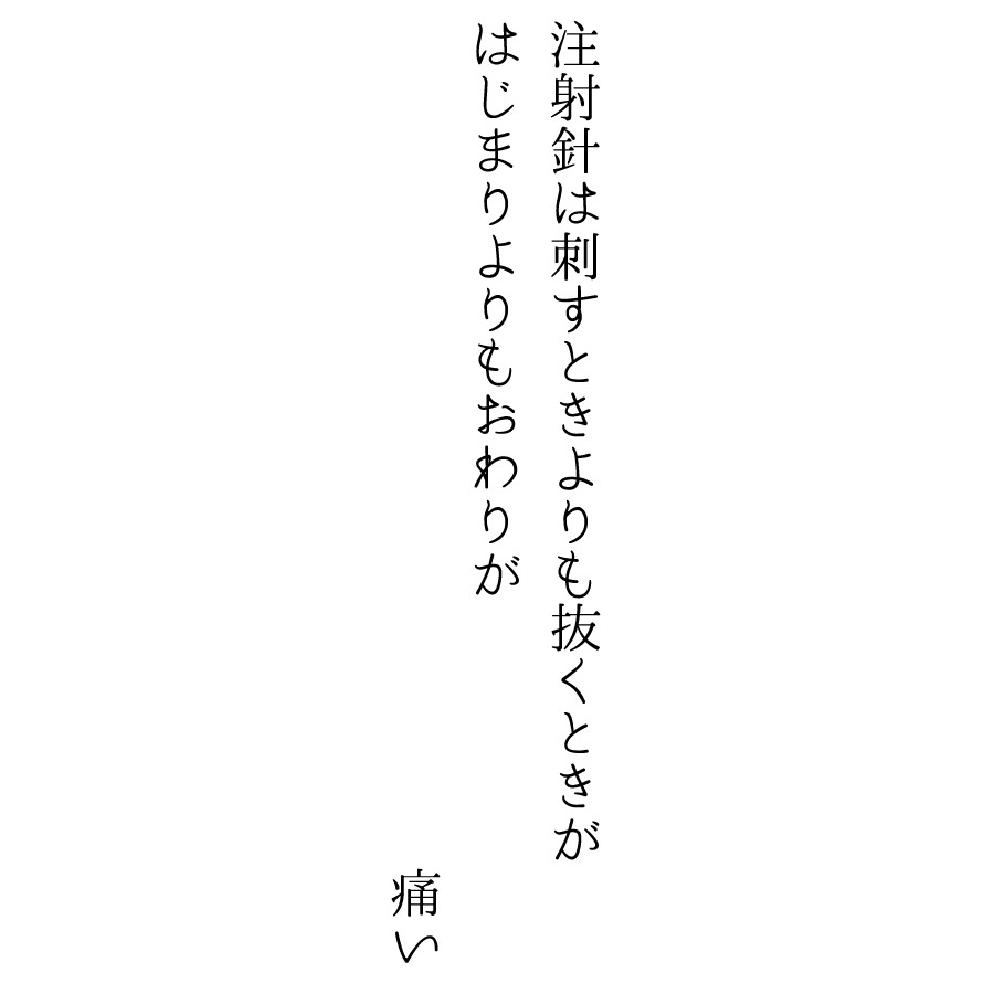 注射針は刺すときよりも抜くときが はじまりよりもおわりが 痛い 2025.10.22 ぼくおわ - music / ICHIMOSHI / tanka / poetry / novel / illust