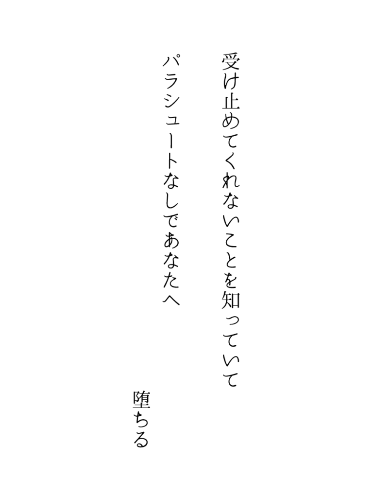 受け止めてくれないことを知っていてパラシュートなしであなたへ堕ちる 2026.02.13 ぼくおわ music / ICHIMOSHI / tanka / novel / poetry / illust